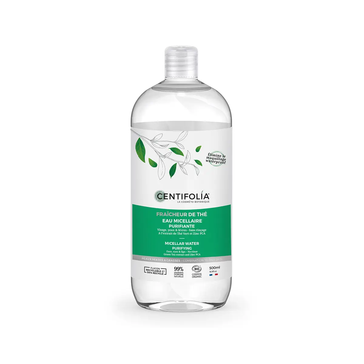 Hidrosol Listovi su veoma bogati kofeinom, polifenolima i flavonoidima, što im daje značajna antioksidativna svojstva. Zeleni čaj se koristi u raznim kozmetičkim proizvodima zbog svojih osvežavajućih, pročišćavajućih i umirujućih svojstava. Takođe sadrži ciljani aktivni sastojak za masnu kožu — cink PCA, koji reguliše proizvodnju sebuma. Centifolia je takođe odabrala hidratantni aktivni sastojak direktno iz prirode — Aloe veru — koja omogućava dubinski čišćenje kože bez iritacije.